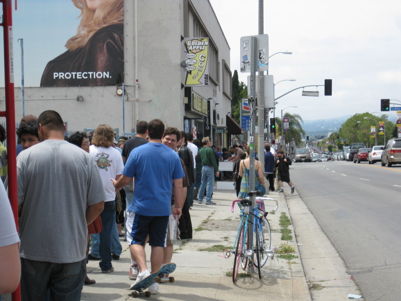 First off was Golden Apple in Melrose, Hollywood’s Comic Store to the stars. Although the store brought in a myriad of comic creators such as Marc Andreyko and Kevin Eastman, the star of the day was William Shatner. The line outside went around the block and people continued to trickle in after the event had started.