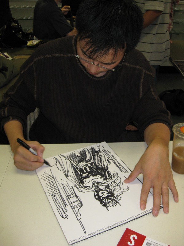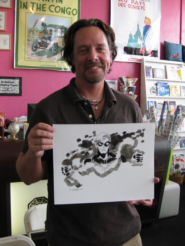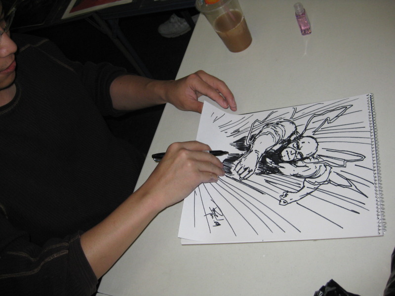 A little disappointed, I carried on my little excursion to the next destination: Comic Odyssey in Pasadena, where Philip Tan was there signing and sketching for the fans. There was a line of about 10 people when I showed up, and Philip took the time to sketch for every fan in line. And not only were these simple head sketches, but he was pounding out 3/4 body pieces. It’s amazing to watch an artist go to work and be in a zone where he’s cranking out sketches every 10 minutes.