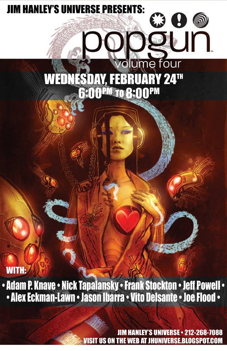 The fourth volume of the awesome Image anthology series Popgun is being released February 24, and Jim Hanley’s Universe in New York City will be hosting some of the creators for an EXCLUSIVE signing!