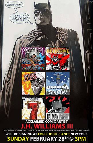 Home Category Comic Books NYC – Detective Comics Signing CategoryComic BooksDirectorySigning and Appearance ProfilesUnited StatesNew York NYC – Detective Comics Signing By Colin Solan - February 18, 2010 113 1 FacebookTwitterPinterestWhatsApp JH Williams III signs on February 28th at 3pm at Forbidden Planet. Forbidden Planet, 804 Broadway, New York, NY 10003