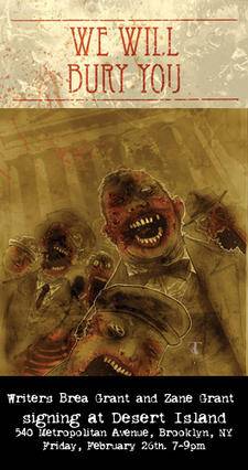 Brea Grant (Heroes, Halloween II) and Zane Austin Grant sign the first issue of their historical horror comic We Will Bury You at Desert Island Comics in Brooklyn on Friday, February 26th from 7-9pm. Brea said on her blog that she will only be there for the first hour so show up early.