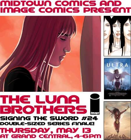 Jonothan and Joshua Luna sign at Midtown Comics Grand Central on May 13th from 4-6pm.