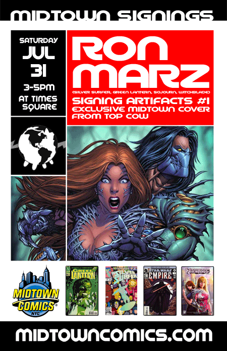 Ron Marz signs his new book Artifacts #1 from Top Cow with an exclusive Midtown Comics variant cover. These exclusive Artifacts #1 covers will be extremely limited and available only at Midtown Comics and Midtowncomics.com so don’t miss out!