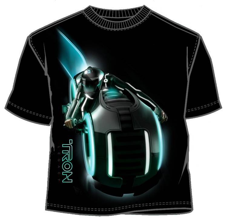 Fans are expecting Disney’s “TRON Legacy” to be one of the blockbuster’s later this year, and designer Mad Engine has created a unique “Light Cycle” t-shirt to show off the futuristic motorcycle using glow-in-the-dark inks to mimic the feel of the movie.