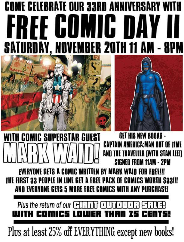 Superstar writer Mark Waid signs comics on Saturday, November 20th from 11:00 AM until 2:00 PM.