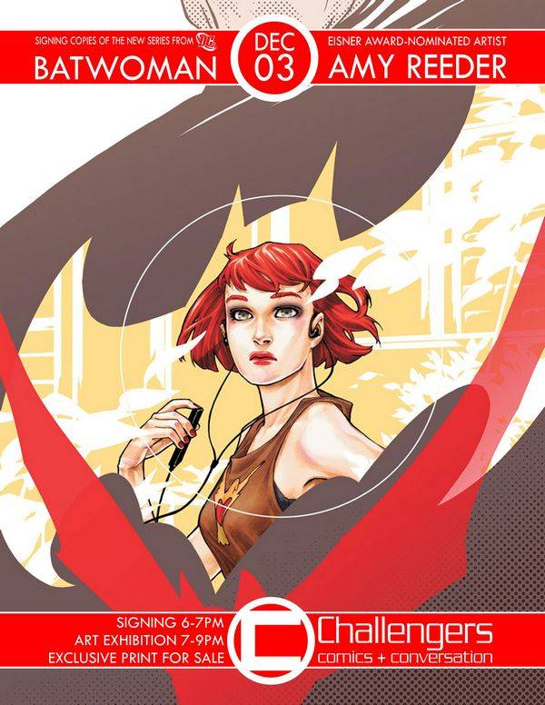 Amy Reeder signs on DecemberĀ 3rd at 6pm with an art exhibition to follow.