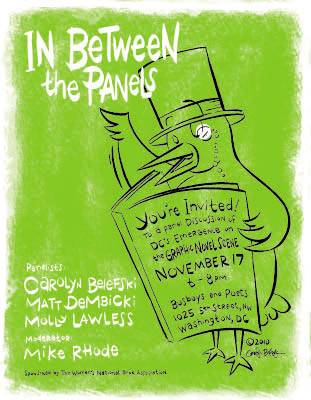 The Women’s National Book Association, DC Chapter will sponsor a panel discussion on the DC graphic novel scene. The panel for the event, to be held at Busboys & Poets in Mt. Vernon, from 6:00 to 8:00 p.m., will include Carolyn Belefski, Molly Lawless, Matt Dembicki, and Mike Rhode. The event is free and open to the public.