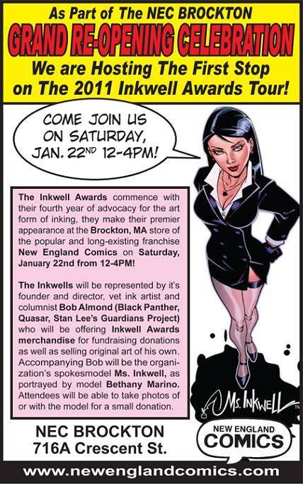 As the non-profit organization The Inkwell Awards commence with their fourth year of advocacy for the art form and artists of inking, they make a premier appearance at the Brockton, MA store of the popular and long-existing franchise New England Comics on Saturday, January 22nd from 12-4pm.