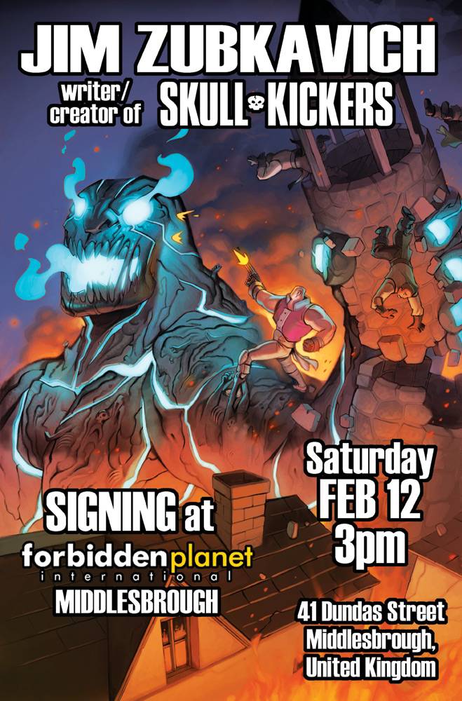 Home Category Webcomics UK – Skullkickers Signing CategoryWebcomicsComic BooksDirectorySigning and Appearance ProfilesEuropeEnglandOther UK – Skullkickers Signing By Colin Solan - January 20, 2011 157 0 FacebookTwitterPinterestWhatsApp Jim Zubkavich signs at Forbidden Planet on February 12th at 3pm. RSVP on Facebook! Forbidden Planet 41 Dundas Street, Middlesbrough, UK
