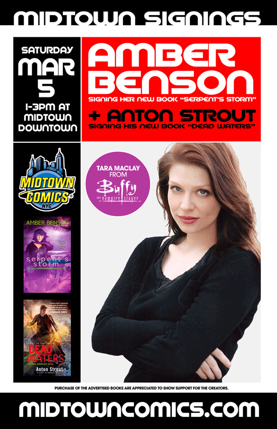 Amber Benson & Anton Strout sign at Midtown Comics on Saturday, March 5th from 1:00pm – 3:00pm.
