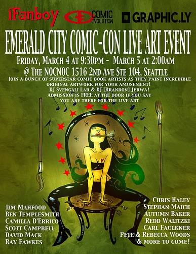 What: iFanboy.com, Graphic.ly, and Comic Evolution present the hottest event at this year’s Emerald City ComicCon: Live Art at the Noc Noc!