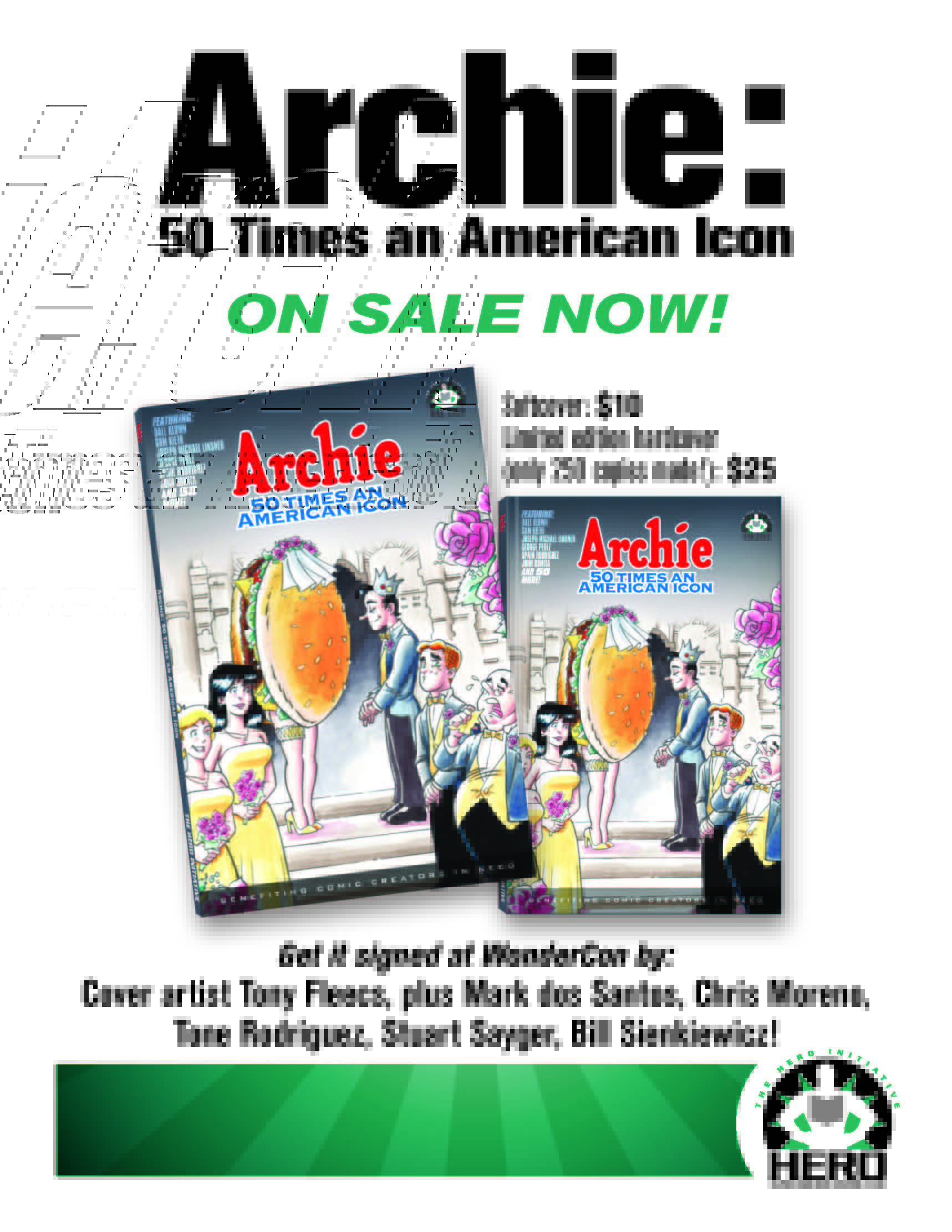 At our booth we will have newly released Archie: 50 Times and American Icon book for sale! All 50 amazing covers have been donated from artists around the world to comprise this fantastic collection! Get it while supplies last! Don’t forget to check out our line up for sketches and signatures. Proceeds all go to Hero Initiative’s great cause. Check it out!