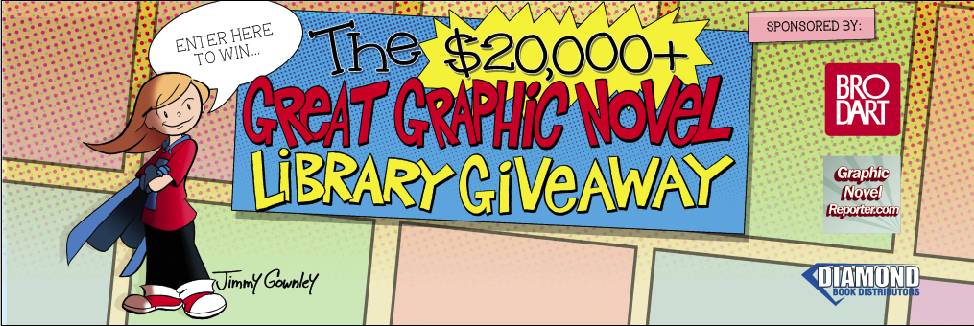 New York, NY — Author and illustrator Jimmy Gownley (Amelia Rules) has teamed up with Brodart, Diamond Book Distributors, and GraphicNovelReporter.com to donate his talent and his time to create the promotional artwork for The $20,000+ Great Graphic Novel Library Giveaway at the American Library Association’s (ALA) Annual Conference in New Orleans taking place June 24 to June 27.