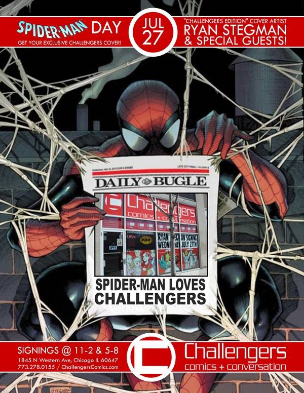 Home Category Comic Books IL – Spider-Man Day CategoryComic BooksDirectorySigning and Appearance ProfilesUnited StatesIllinois IL – Spider-Man Day By Colin Solan - June 28, 2011 157 0 FacebookTwitterPinterestWhatsApp Ryan Stegman and special guests sign on July 27th! Challengers Comics 1845 N. Western Ave, Chicago, IL 60647