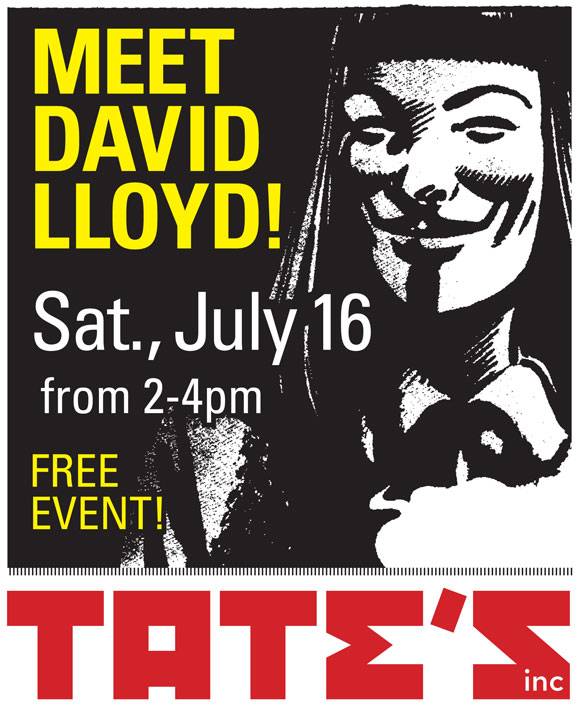 Free Event! DAVID LLOYD is the illustrator and co-creator of V For Vendetta. He’s also worked on the Hellblazer and Aliens series, drawn for Global Frequency, War Stories, and created the acclaimed crime thriller, Kickback.