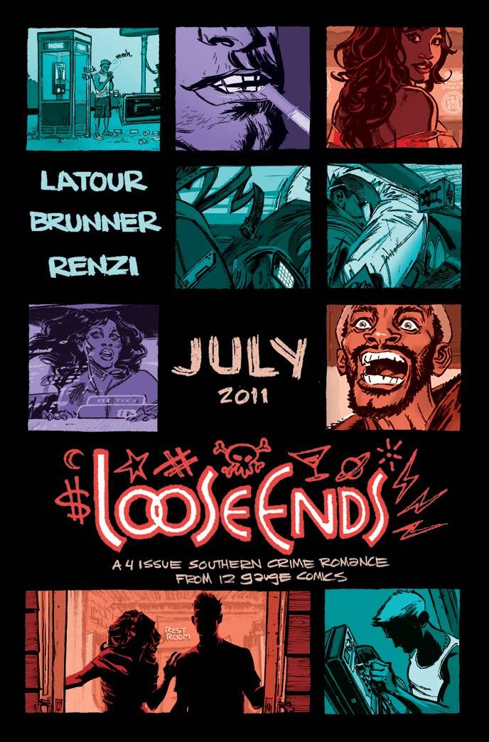 Jason Latour, Chris Brunner, and Rico Renzi sign at Heroes next Wednesday, July 13th. The guys will be in the store at two different times that day, first from 12PM to 2PM and again from 5PM to 8PM. As an added bonus, Heroes will give away a limited edition, 2 color, silk screen poster to anyone who buys a copy of Loose Ends #1 (regular or variant sketch cover, while supplies last).