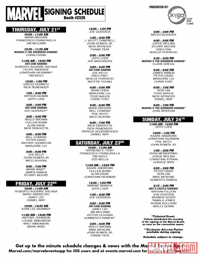 Marvel has finally announced their signing schedule and other events for Comic-Con: