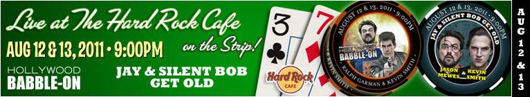 Jay and Silent Bob Get Old featuring Kevin Smith and Jason Mewes plus Hollywood Babble-On featuring Ralph Garman & Kevin Smith appear at the Hard Rock Cafe on the Strip on Friday, August 12th and Saturday, August 13th at 8:00 PM PDT!