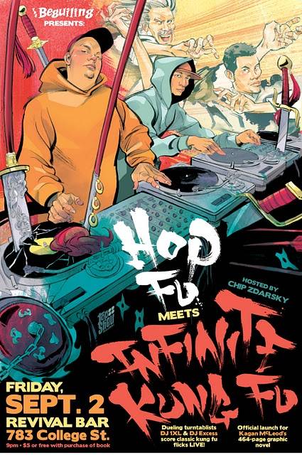THE LONG-AWAITED DEBUT! It’s the official book launch for Kagan McLeod’s INFINITE KUNG FU, a massive 464-page graphic novel by Kagan McLeod. Serialized in comics, serialized on the internet, with short stories in jams across the world, the whole story is now complete and ready for you to put in your hot little hands!
