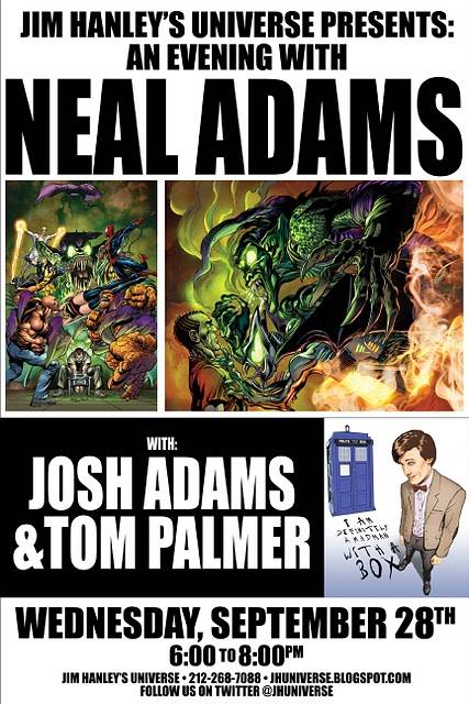Wednesday, September 28 sees the release of Avengers #16.1 featuring the art of legendary illustrator Neal Adams (Batman Odyssey) and to celebrate, Jim Hanley’s Universe will host Neal for an EXCLUSIVE signing, Wednesday, September 28 from 6:00pm to 8:00pm! Joining Neal is the equally legendary inker Tom Palmer (Kick-Ass) and Neal’s son (and talented illustrator in his on right) Josh Adams (Doctor Who)!.