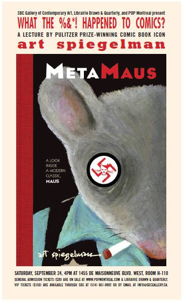 The SBC Gallery, Librairie Drawn & Quarterly, and POP Montreal present What the %&*! Happened to Comics?, a lecture by Pulitzer?Prize-winning comic book icon Art Spiegelman. This unique event offers fans of the graphic narrative and comic art the opportunity to hear firsthand one of the great raconteurs of the medium. Spiegelman takes his audience on a highly entertaining chronological tour of the evolution of comics, emphasizing the value of this medium in our post?literate culture.