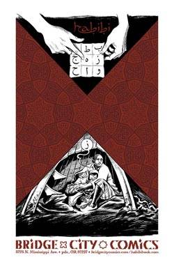 Craig has graciously created brand new artwork for a print available ONLY during our signing event on Friday, October 7! If you buy a copy of Habibi from Bridge City Comics from its release on September 20 through the signing on October 7th, you’ll be given a special card. Bring the card with you to the signing and we will give you a copy of the print FOR FREE during the event (while supplies last)! Prints will also be available for $10 each if you bought Habibi somewhere else.