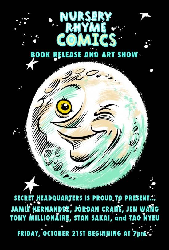 Jamie Hernandez, Stan Sakai, Tony Millionaire, Jordan Crane, Jen Wang, and Tao Nyeu sign at Secret Headquarters on Friday, October 21st beginning at 7pm!