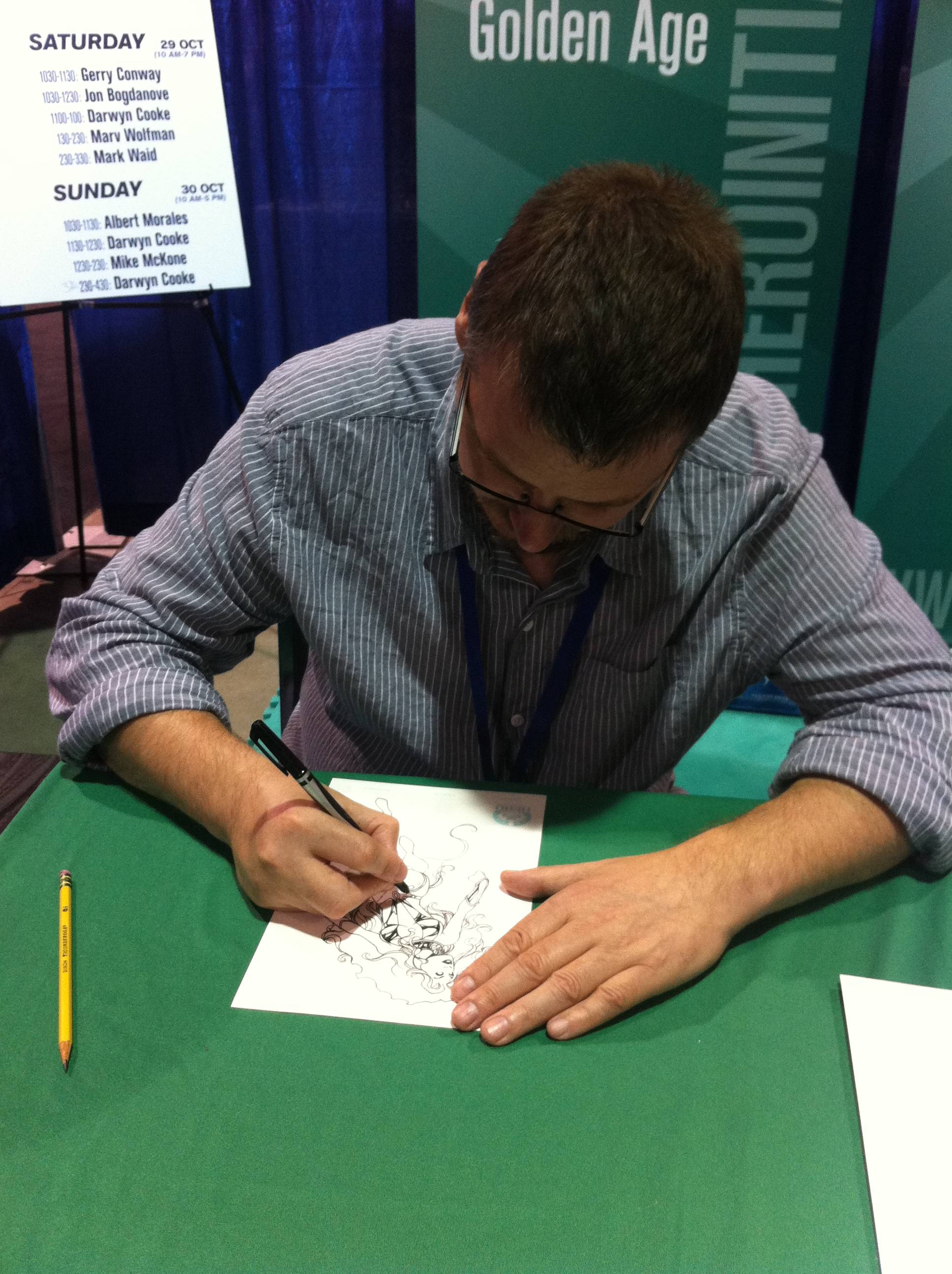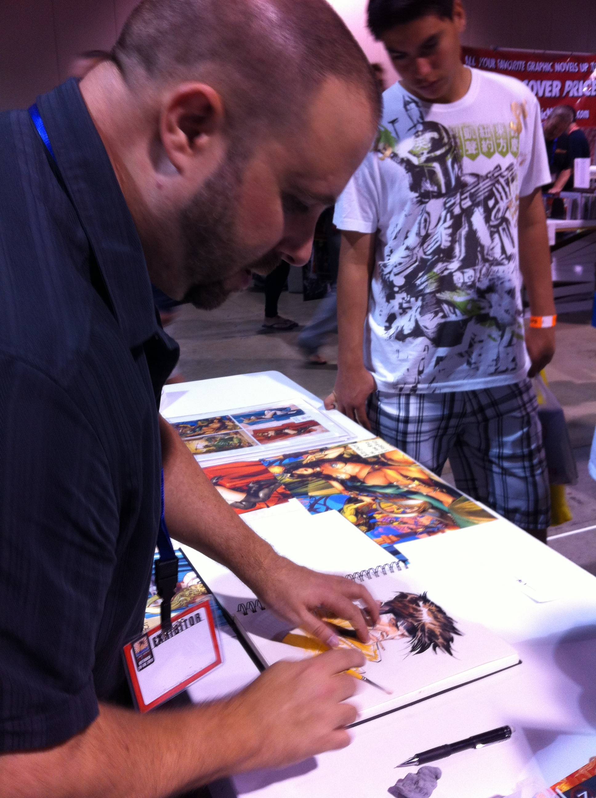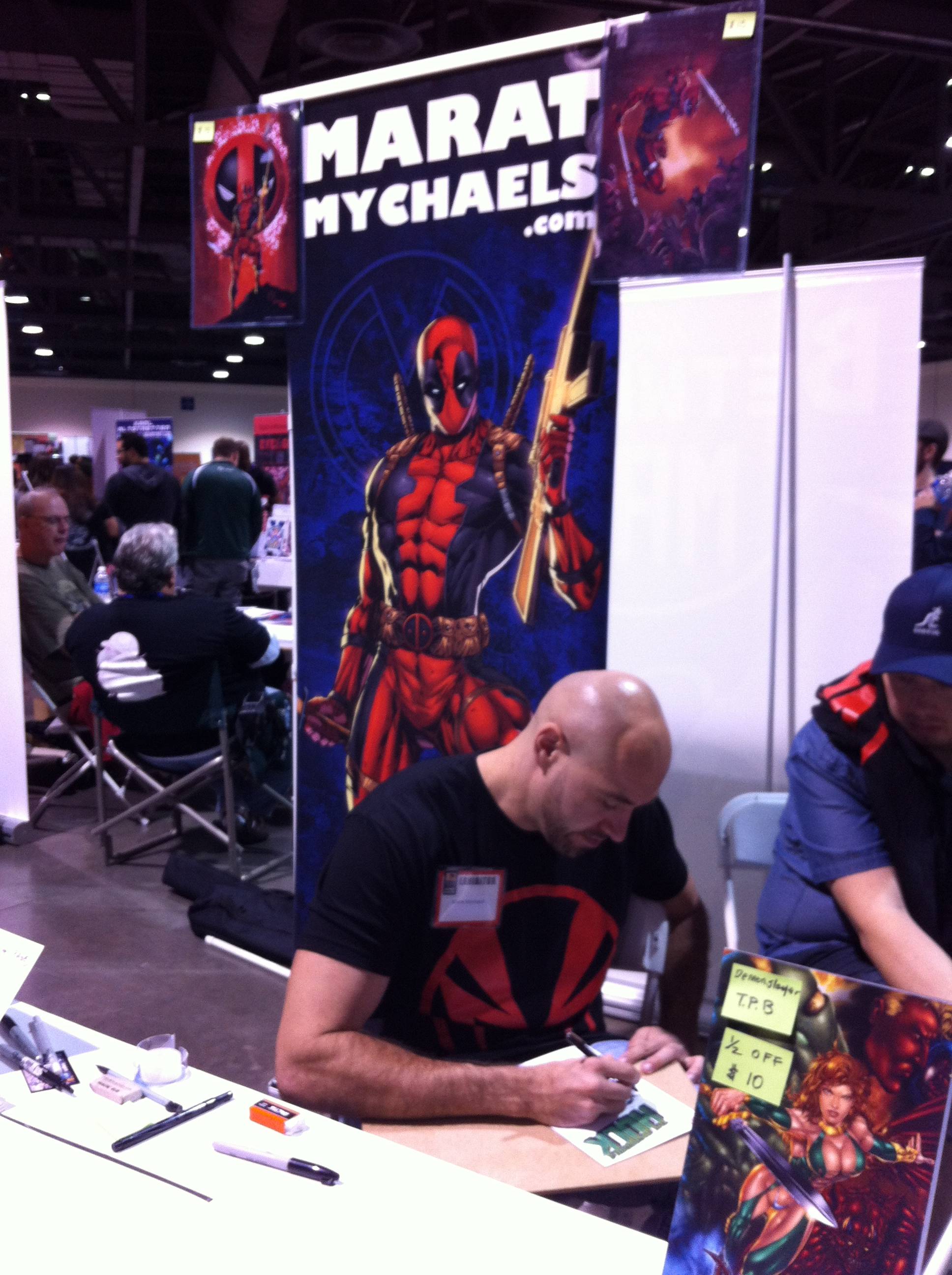 I was there! Good comic con! Comes in second place with it being the second best comic con in southern Cali, right behind San Diego. The first time I went to the San Diego and Long Beach Con were the best! Now, that the show is over, I am surprised that nobody on any website is not talking about Thomas Jane’s weird behavior on saturday. He was seen running around barefooted. He wouldn’t shake my hand or anybody else’s. He made a snarly face when he took a picture with a fan. He was flipping through boxes of books with a cigar in his mouth. He went as far as to get on the intercom or paging sytem and say what booth he was signing at, and to not touch him. And he also threw a pen or sharpie that wasn’t working past my friend’s, Darren from Skyhigh Comics, head. On sunday, he was his usual (unusual?) self. Was he on drugs or medication or what? If anyone can explain his weird behavior, let me know. I know Tom is usually friendly with everybody. Maybe, he just wanted to goof off. We may never know…