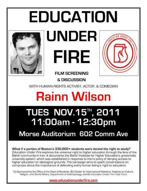 Rainn Wilson screens a documentary at Boston University on Tuesday November 15, 2011 at 11am.