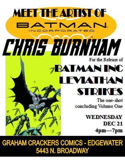Chris Burnham signs at Graham Crackers Comics on Wednesday, December 21st from 4PM – 7PM for the release of Batman Inc: Leviathan Strikes, the one-shot concluding Volume One of Batman Inc.