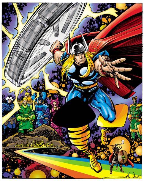 WALT SIMONSON [penciler] is a triple-threat talent, lauded for his work as writer, penciler, and inker. His first professional artwork appeared in 1973 in DC’s Weird War Tales. He gained prominence with his collaboration with Archie Goodwin on the Manhunter feature, and from there went on to many triumphs, including landmark runs on The Mighty Thor, The Fantastic Four (both of which he wrote, penciled and inked), and Michael Moorcock’s Elric.