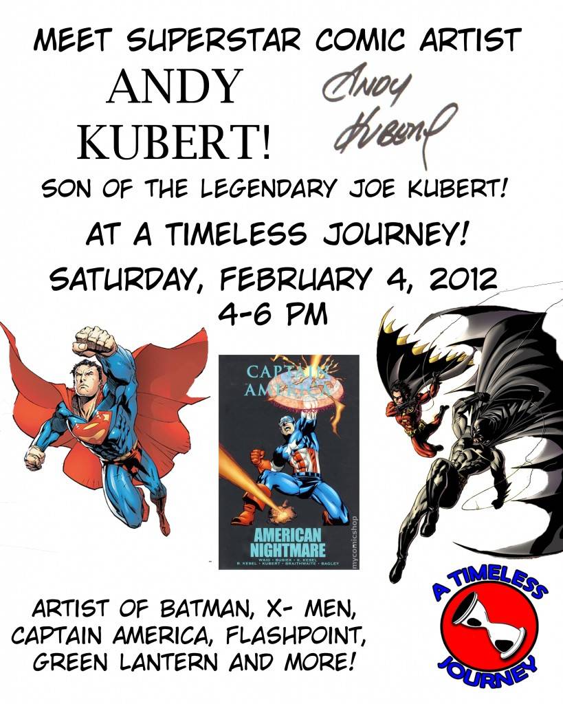 Superstar artist Andy Kubert signs at A Timeless Journey on Saturday February 4, 2012 from 4-6pm!
