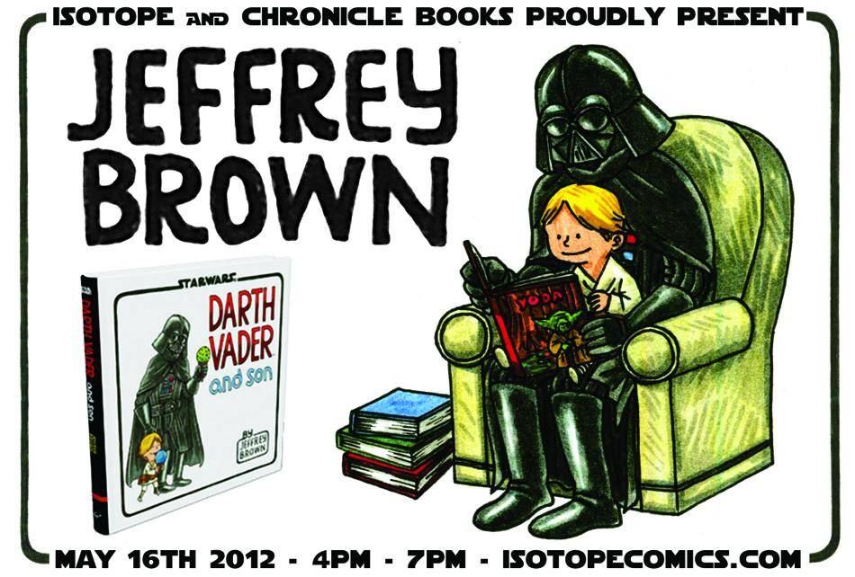 Indie comics god Jeffrey Brown, the man behind some of our most beloved comics including CAT GETTING OUT OF A BAG, CLUMSY, UNLIKELY, and INCREDIBLE CHANGE-BOTS, has a really wonderful new book coming out that you won’t want to miss… DARTH VADER AND SON, and the Isotope and our friends at Chronicle Books have teamed up to bring you Jeffrey’s first 2012 San Francisco public appearance.