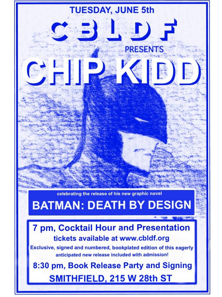 Celebrate free speech at this year’s Book Expo by raising a toast to CHIP KIDD on Tuesday, June 5th in a benefit to support the Comic Book Legal Defense Fund!