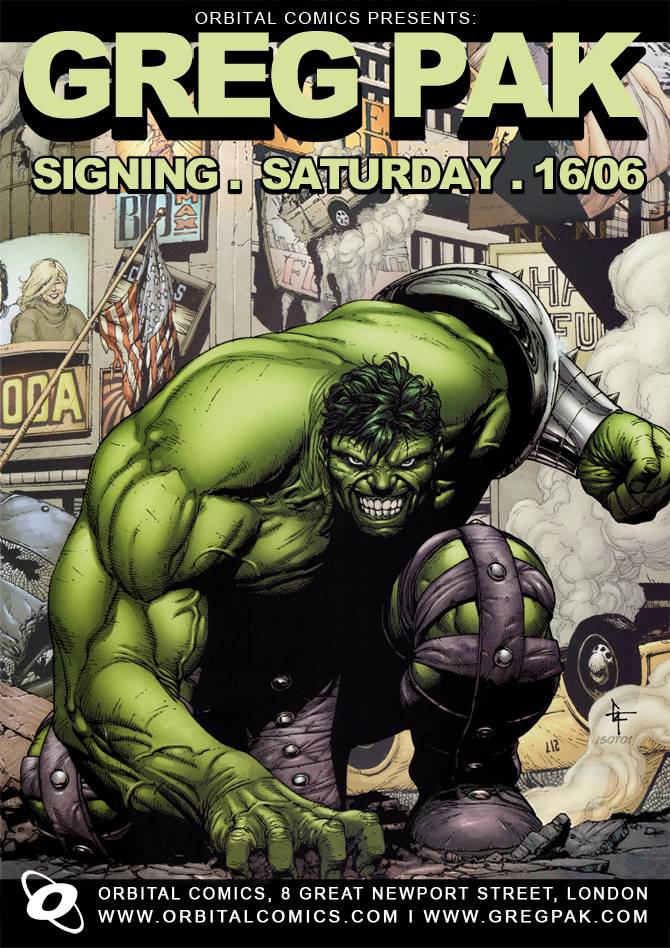 UK – Planet Hulk Writer Signs: Writer Greg Pak signs at Orbital Comics on Saturday June 16, 2012 at 4:00pm! Orbi… http://bit.ly/MNNqA5