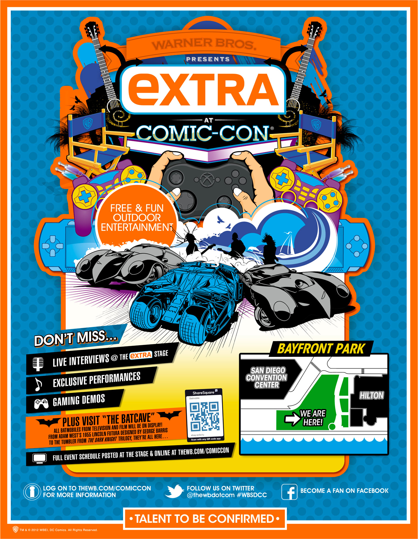 RT @conventionscene: Warner Bros. Wants to Give You Something “Extra” for SDCC 2012 with a Free Outdoor Festival and All 6 Batmobiles – http://t.co/MtHFJoZV