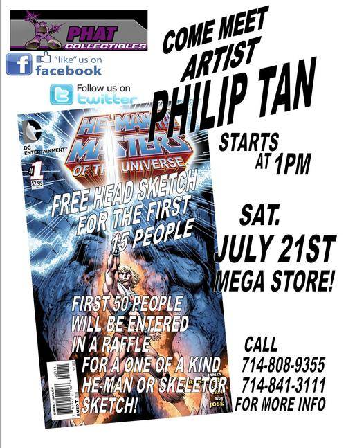 Artist Philip Tan signs at Phat Collectibles on Saturday July 21, 2012 at 1:00 pm. The first fifteen people in line will get a FREE! head sketch and the first fifty people in line will be entered in a raffle for a one of a kind He-Man or Skeletor sketch.