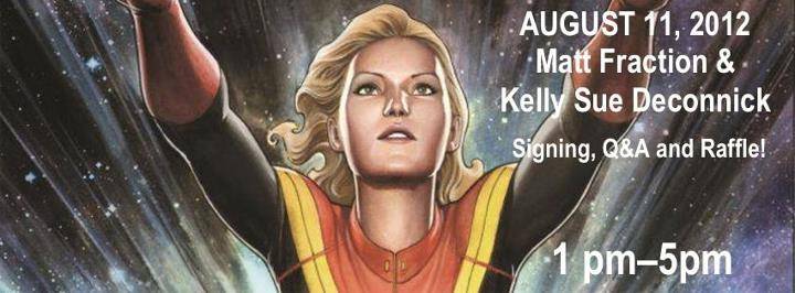 Writers Matt Fraction and Kelly Sue Deconnick appear at Olympic Cards & Comics for a signing on Saturday, August 11, 2012 at 1:00pm.
