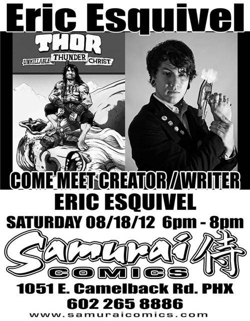 Eric Esquivel signs at Samurai Comics on Saturday August 18, 2012 from 6:00pm until 8:00pm.