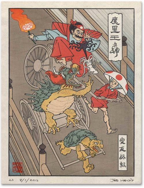 Japanese wood block prints are a historical art form, combine it subtly with some of the most iconic Nintendo characters and you have a poetic and beautiful amalgamation of visual and pop cultures.