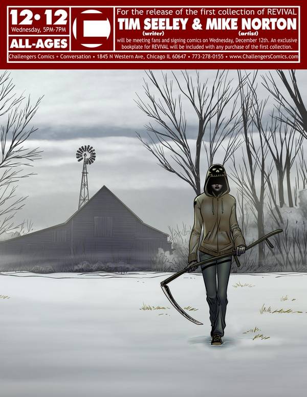 Creators Tim Seeley and Mike Norton meet fans and sign comics on Wednesday, December 12th from 5:00 pm to 7:00 pm. An exclusive bookplate for REVIVAL Volume 1 will be included with any purchase of the collection.