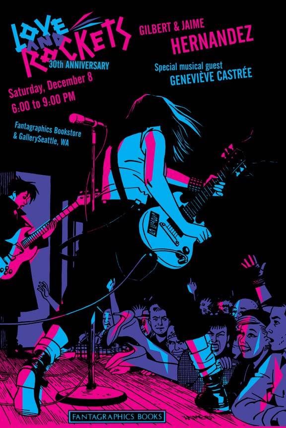 Jaime & Gilbert Hernandez celebrate 30 years of Love & Rockets at the Fantagraphics Bookstore & Gallery on Saturday, December 8, 2012 from 6:00 – 9:00 pm! Special musical guest Geneviève Castrée performs.