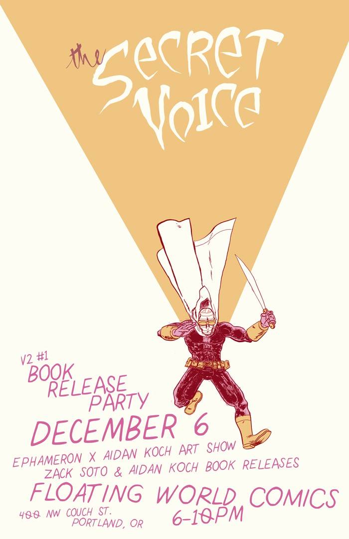 The Secret Voice is an epic adventure comic like no other – visually, equal parts Fort Thunder and Eurocomic, and narratively a study of action and reaction with tongue-in-cheek character work and a troubled, unreliable narrator. Mysticism, kung fu fighting, incredible monsters, and unique world-building all come together in an action-packed and explosive comic book. Serialized weekly on the popular webcomics portal StudyGroupComics.com, The Secret Voice v.2 #1 collects the rollicking first year of full color updates. Creator Zack Soto will be in attendance signing copies of the new publication and exhibiting original pages of comics art.