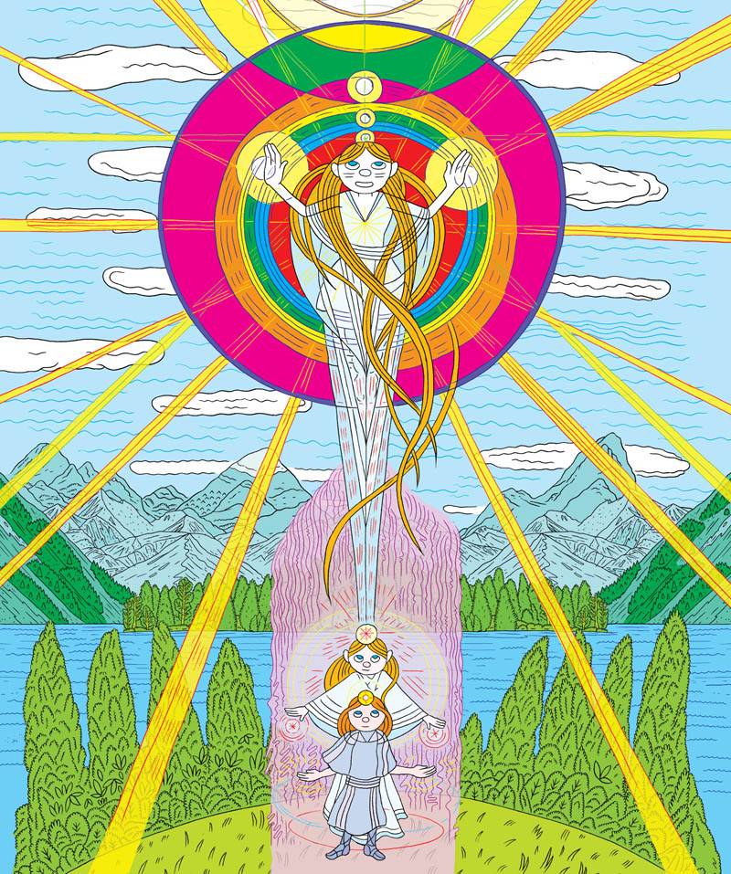 Ron Regé, Jr. is a very unusual yet accomplished storyteller whose work exudes a passionate moral, idealistic core that sets him apart from his peers. The Cartoon Utopia is his magnum opus, a unique work of comic art that, in the words of its author, “focuses on ideas that I’ve become intrigued by that stem from magical, alchemical, ancient ideas & mystery schools.” It’s part sci-fi, part philosophy, part visual poetry, and part social manifesto. Regé’s work exudes psychedelia, outsider rawness, and pure cartoonish joy.