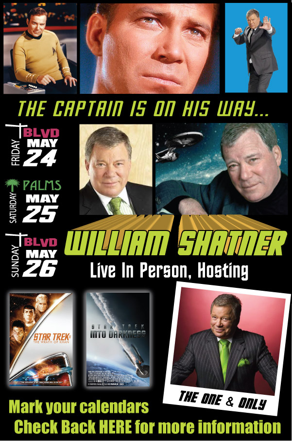The one and only William Shatner appears at the Hollywood Theaters to sign autographs and host screenings of Star Trek Into Darkness and Star Trek II: The Wrath of Khan on May 24-26!!