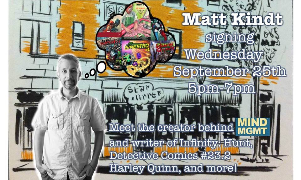 Matt Kindt signs at Star Clipper Comics on Wednesday, September 25, 2013 from 5:00pm until 7:00pm