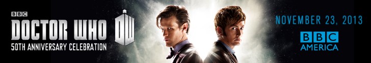 The centerpiece of BBC AMERICA’s Doctor Who 50th Anniversary celebrations is the global simulcast of Doctor Who: The Day of the Doctor, written by Steven Moffat. BBC AMERICA is celebrating the anniversary this month with new programming including specials and marathons. For broadcast times, visit BBCAmerica.com. In the anniversary special, The Doctors (Matt Smith, David Tennant) embark on their greatest adventure across space and time. In 2013, something terrible is awakening in London’s National Gallery; in 1562, a murderous plot is afoot in Elizabethan England; and somewhere in space an ancient battle reaches its devastating conclusion. All of reality is at stake as the Doctor’s own dangerous past comes back to haunt him. The special stars Matt Smith, David Tennant, Jenna Coleman, with Billie Piper and John Hurt. Watch trailer here.