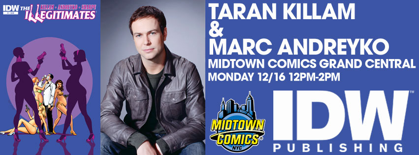 SNL’s Taran Killam and co-writer Marc Andreyko appear at Midtown Comics Grand Central on Monday, December 16, 2013 from noon till 2:00 pm for a special signing of their new comic from IDW Publishing The Illegitimates #1.