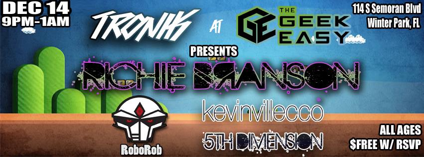 A Comic Shop and The Geek Easy present December’s installment of TRONIK which hosts the one and only Richie Branson! Join us for a night full of nerdy bass tracks, and nerdcore hip hop.
