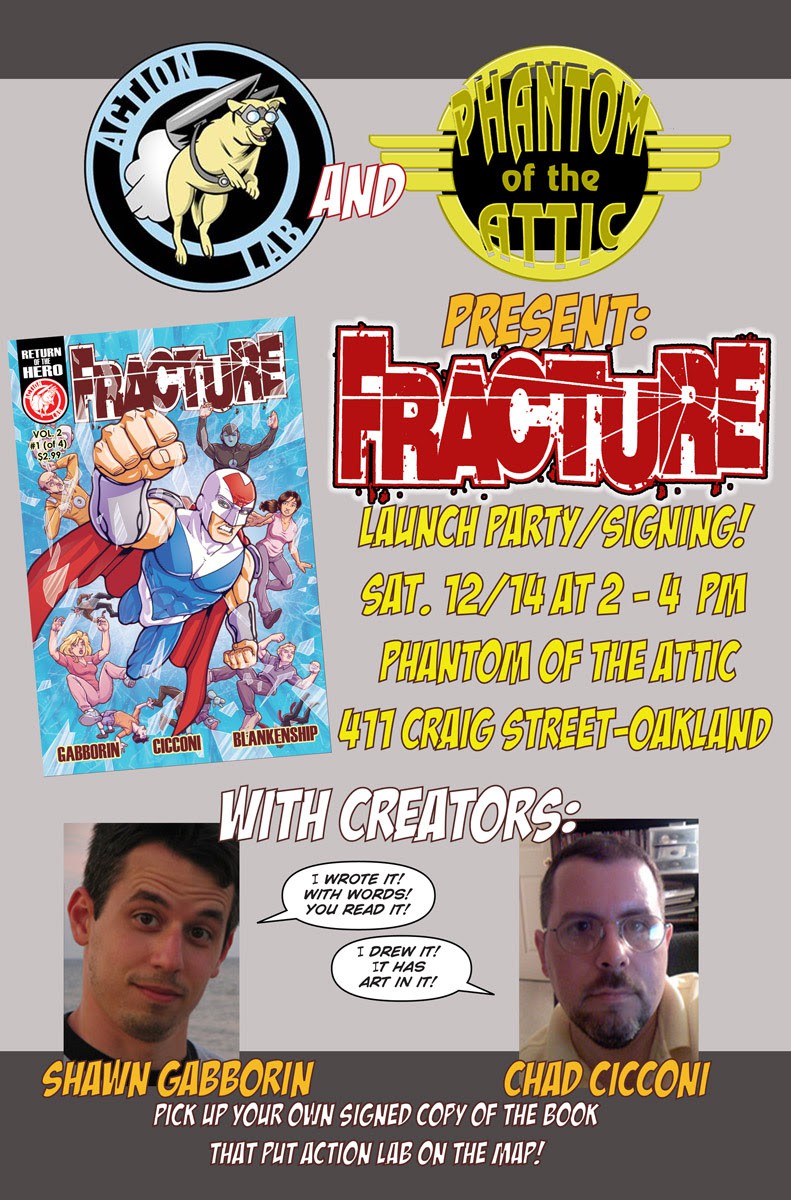 Creators Shawn Gabborn and Chad Cicconi sign Action Lab’s “Fracture” Vol. 2 #1 at Phantom of the Attic on Saturday, December 14th, 2013 from 2:00PM till 4:00PM.